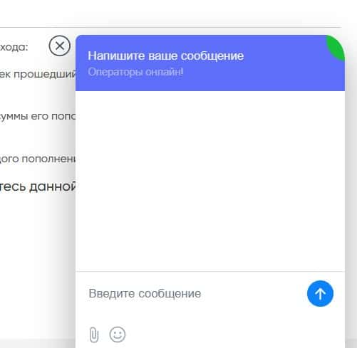 В углу сайта можно обнаружить окно он-лайн чата с операторами поддержки компании Zykov Partners, но это всего лишь имитация, общения там не будет.