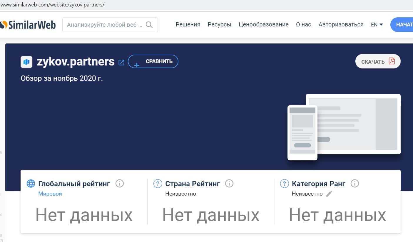 - Данные сервиса проверки трафика Симиларвеб о домене zykov partners