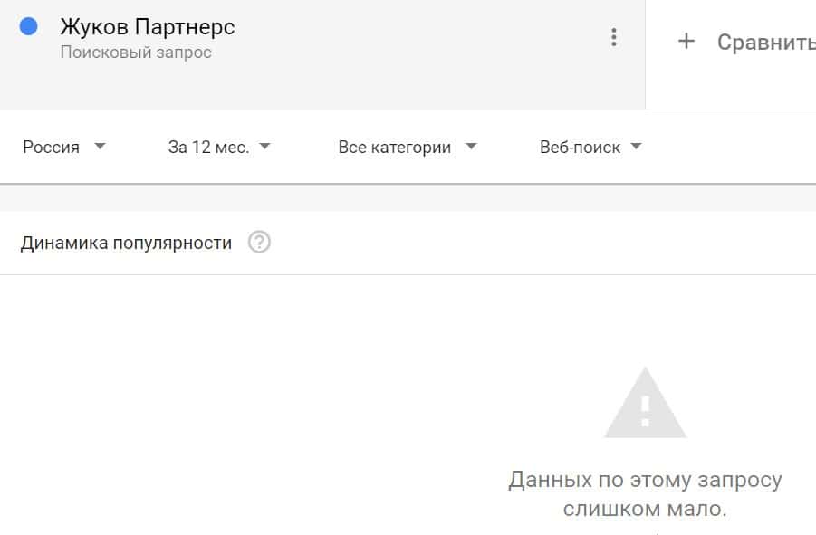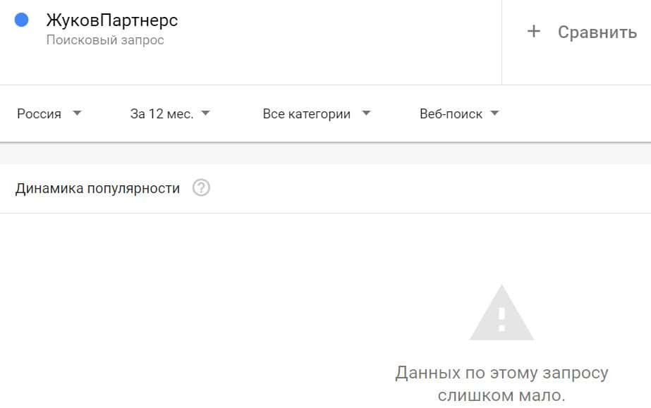 Пользователи вбивали название компании "Жуков Партнерс" с пробелом в поисковик Гугл очень редко.