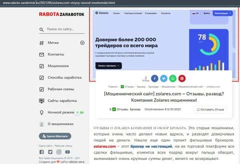 Далее представлена информация о мошенническом брокере Zolares, где описывается, что это его организаторы являются старыми аферистами, которые в очередной раз сделали ребрендинг.