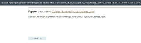 Отзывы клиентов о лохотроне Zolares
