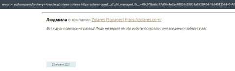 - Отзывы клиентов о лохотроне Zolares