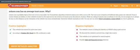 Информация о сайте конторы Золарес согласно сервиса scamadviser com рассказывает нам, что их портал имеет множество ошибок, которые очень опасны для пользователей сети.