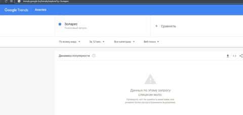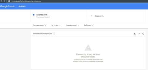 Бренд "Золарес" по запросам не набрал достаточное количество запросов в Гугл, поэтому и Гугл Трендс не выдал никакой статистики.