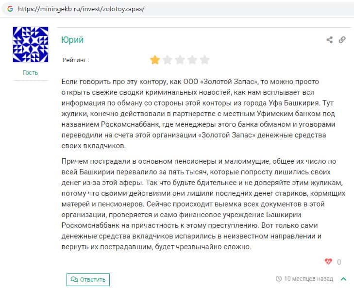 - Отзывы о скам-организации Zolotoy Zapas, ныне присутствующие в сети-интернет