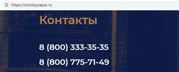 Аферисты ZolotoyZapas Ru на своем дырявом сайте указали два номера контактного телефона, с которых навязчиво названивают потенциальным жертвам: