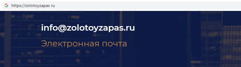 Мошенники Золотой Запас на своем официальном интернет-ресурсе указывают адрес электронной почты, а именно:
