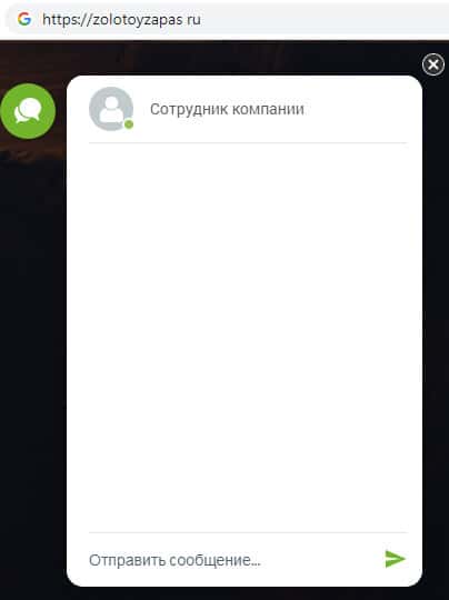 Также представители конторы ZolotoyZapas Ru предоставили в качестве обратной связи онлайн-чат, при помощи которого ведут сбор данных о клиенте, фиксируя все данные на сайте.