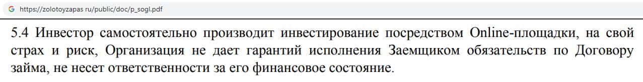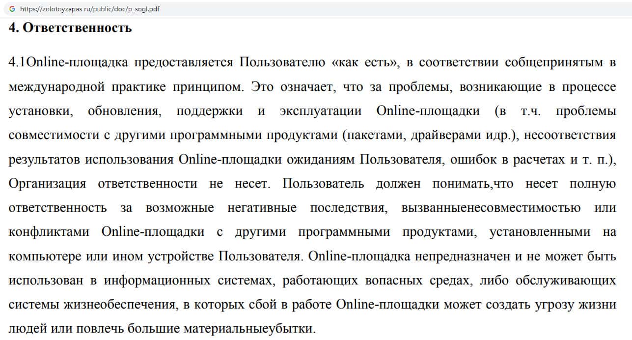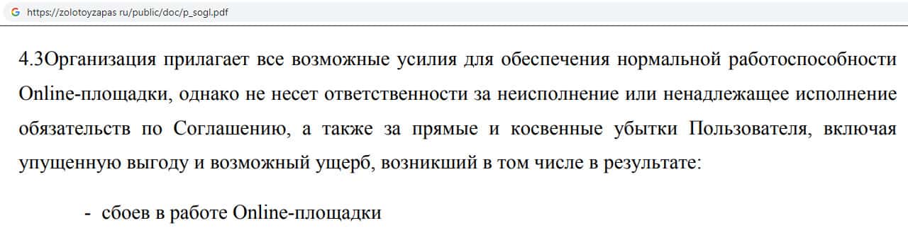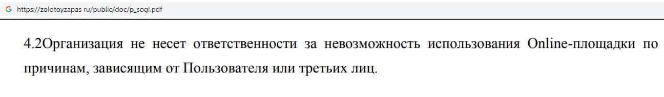 Пользовательское соглашение на сайте жульнической конторы Zolotoy Zapas