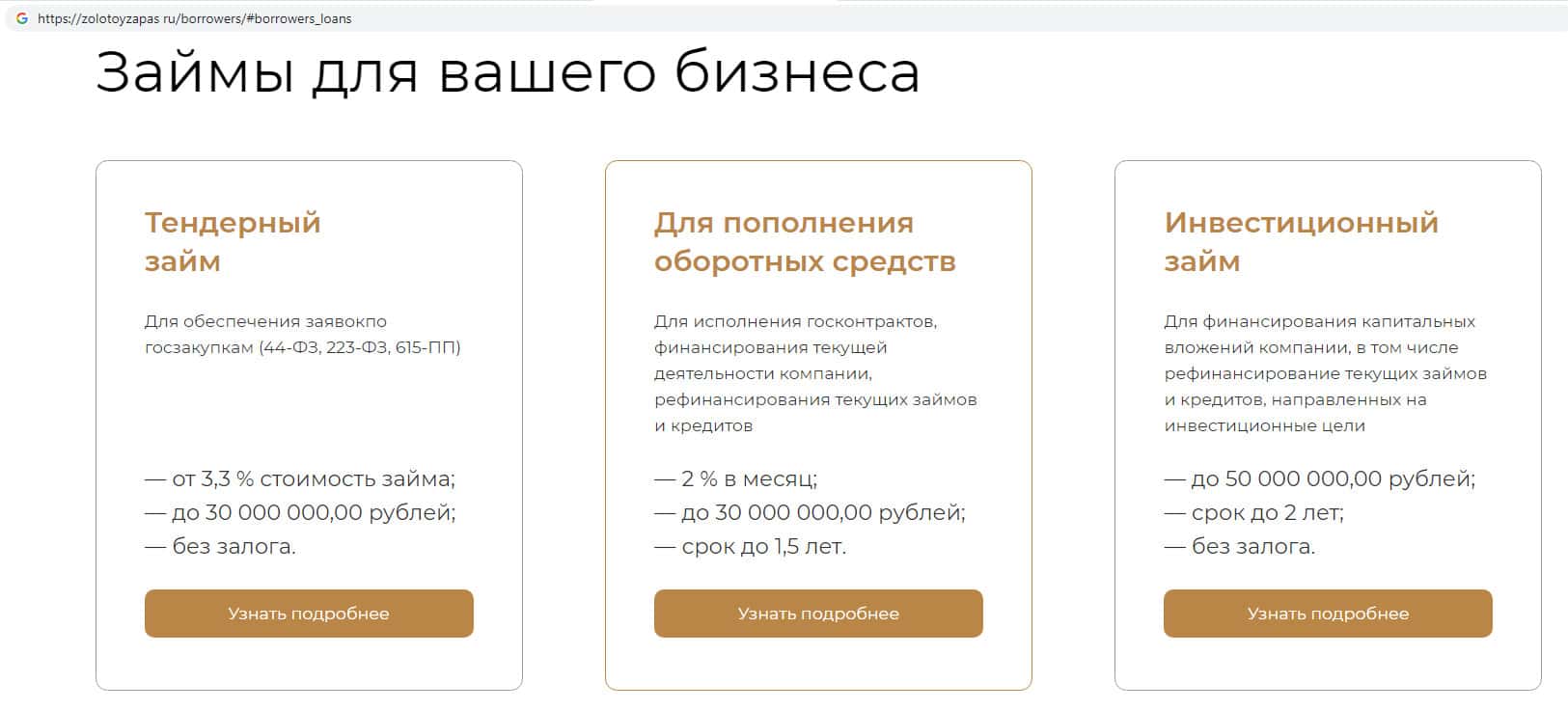 zolotoyzapas ru - официальный онлайн-ресурс конторы Золотой Запас