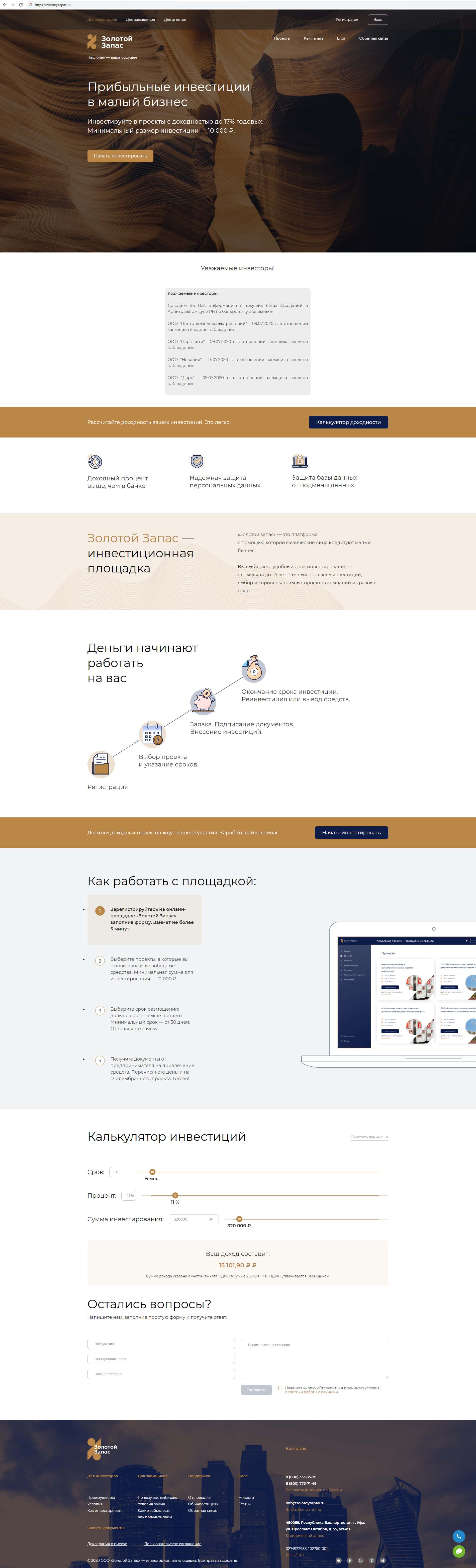 - Главная страница инвест-лохотрона Zolotoy Zapas