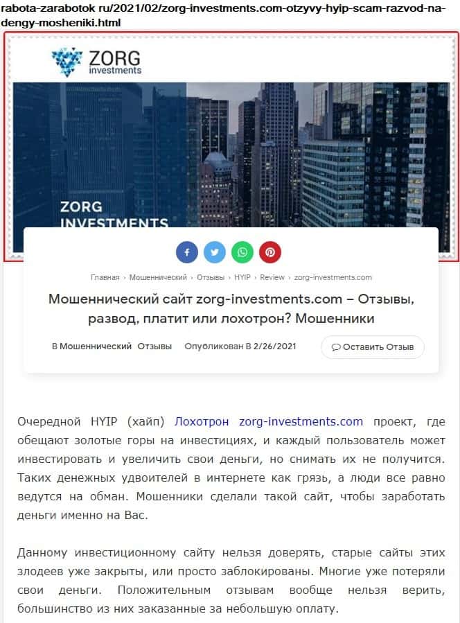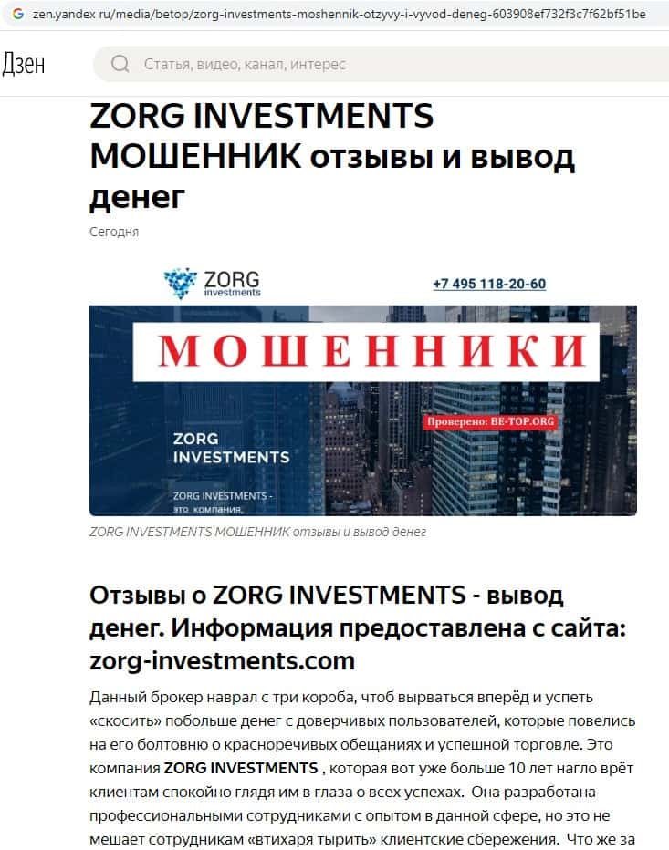 - Мнение о мошенниках Зорг Инвестментс на разных сайтах
