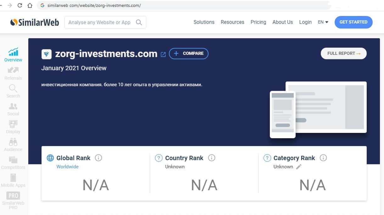 Сайт zorg-investments com настолько убогий, что по нему не показываются даже источники трафика. Из этого уже можно сделать выводы.