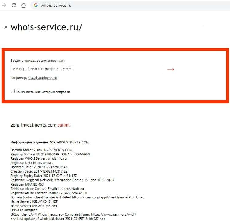 Zorg-investments com - официальный домен жуликов Зорг Инвестментс