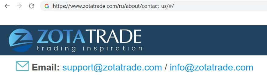 Так же компания финансовых махинаторов Зота Трейд представила пользователям адреса электронной почты. Но мошенники будут просто игнорировать письма пользователей и никак не реагировать на их жалобы. Почтовые адреса аферистов: