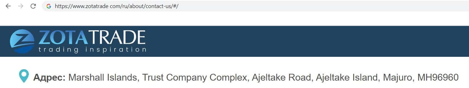 Так же компания финансовых мошенников ZotaTrade указала, что зарегистрирована на Маршаловых островах, это лишний раз доказывает, что перед нами обычные оффшорные аферисты.