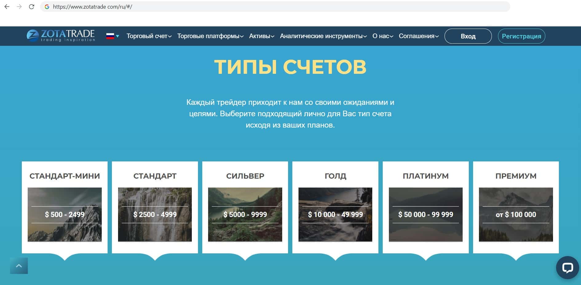 Фирма жуликов Зота Трейд предоставила клиентам на выбор несколько счетов, что бы он выбрал наиболее подходящий по цене. Но всё это сделано специально, чтобы внушить клиенту что он сам что то выбирает.