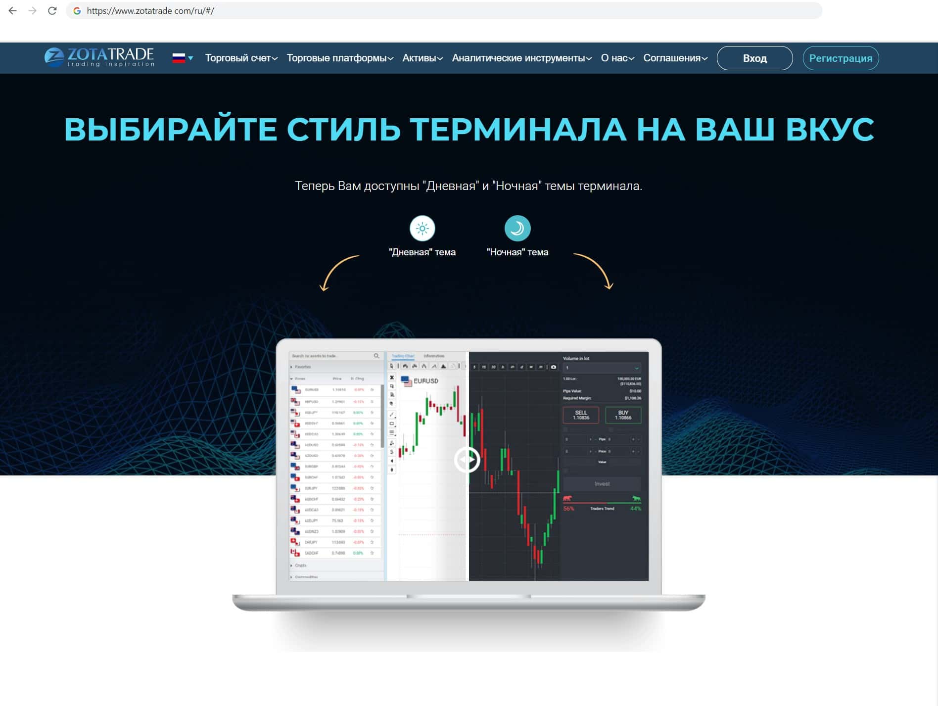 - Вид главного сайта компании финансовых аферистов zotatrade com