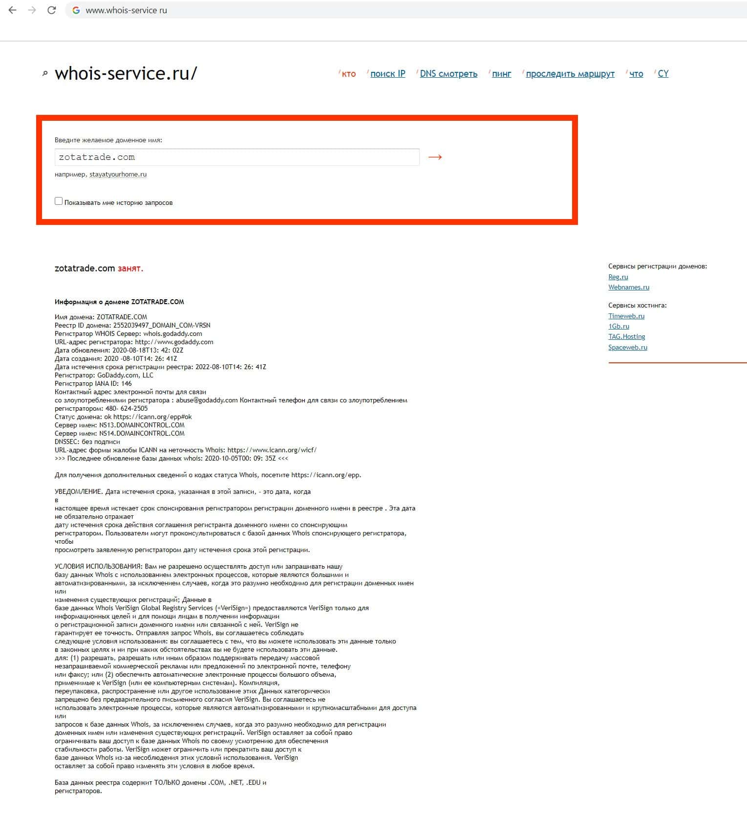 Кому принадлежит домен компании махинаторов ZotaTrade?