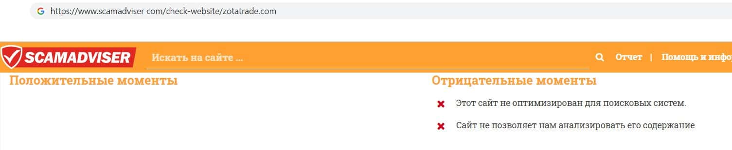 Мнение сайта scamadviser com о главном интернет ресурсе недоконторы Зота Трейд