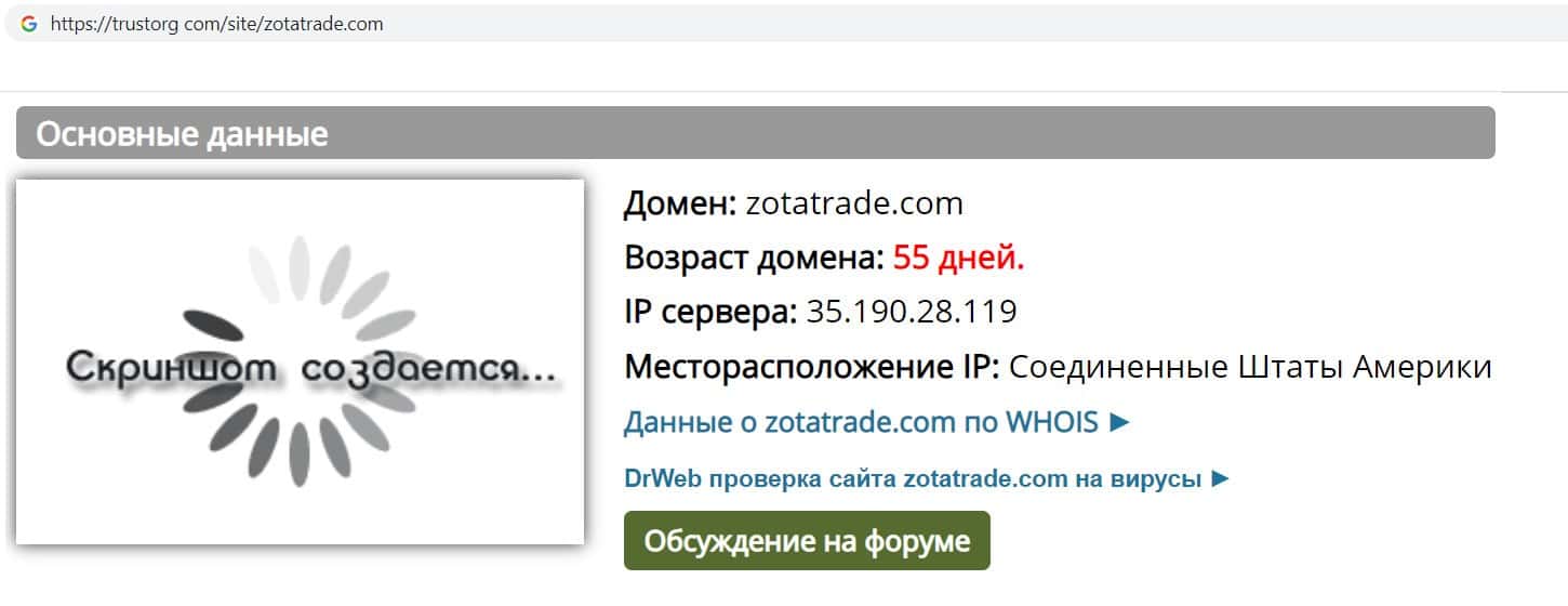 Мы проверили возраст компании кидал ZotaTrade через сайт "Доверие в Сети2. Оказалось, что мошенникам нет и двух месяцев. Компания просто врёт о своём опыте работы.