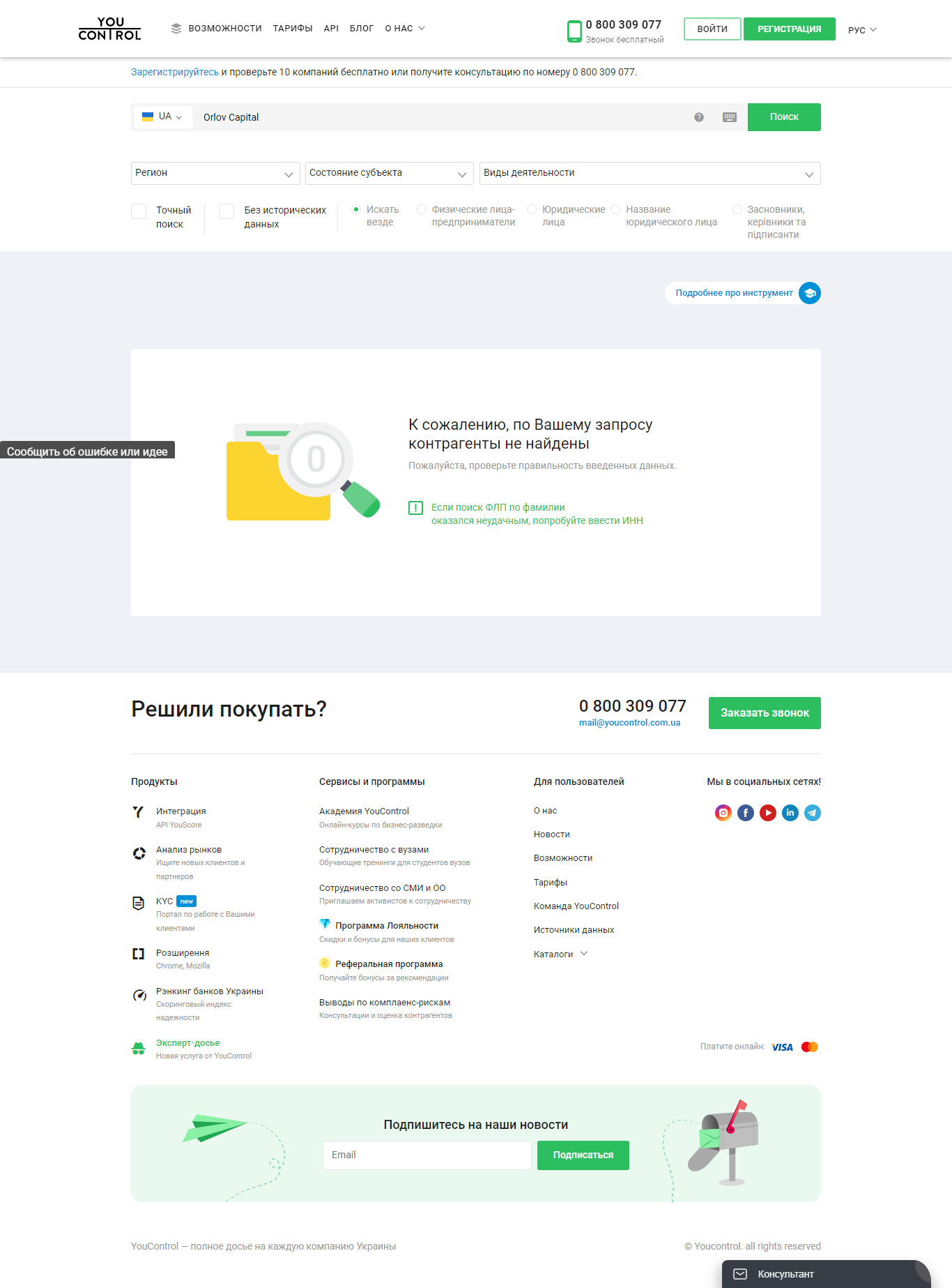 На сайте, который к слову сделан очень бюджетно на типичном конструкторе Tilda, отсутствуют какие-либо официальные контактные данные, там также нет ничего о регистрации компании Orlov Capital. Проверка показала, что ее просто не существует. Orlov Capital - фиктивная придуманная компания. Если любые финансовые компании должны получить лицензию от соответствующих финансовых учреждений, да еще и соблюдать все правила финансовых рисков, то тут нет совершенно ничего.