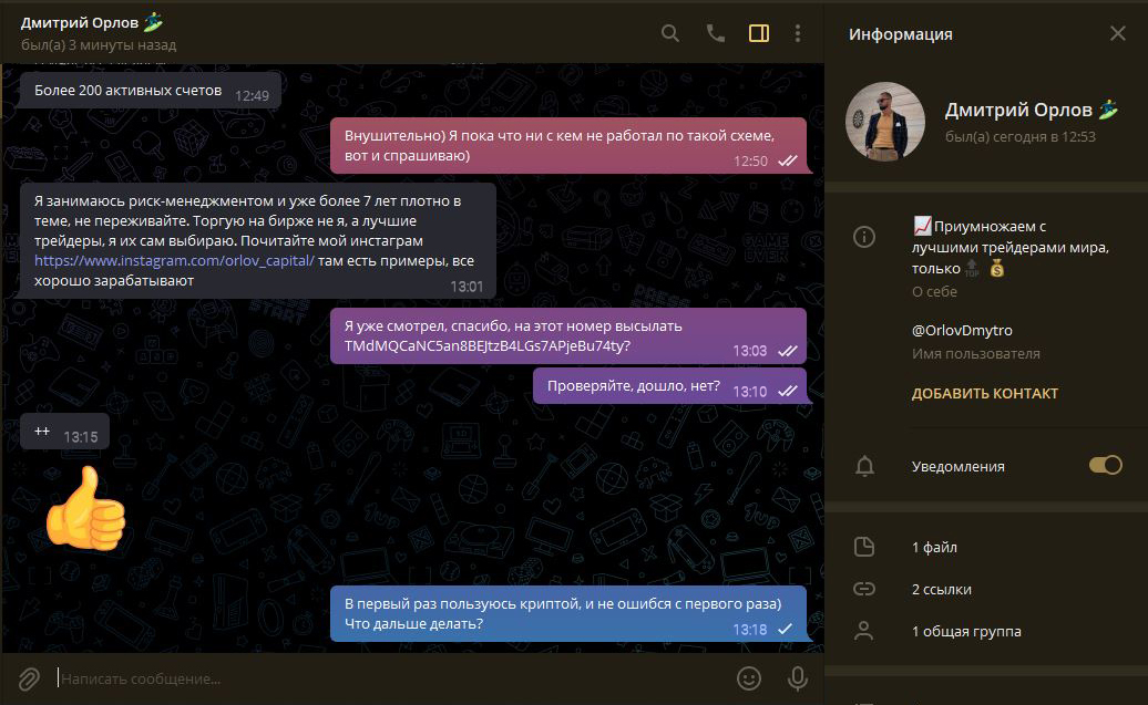 Нам удалось выяснить, что в прокуратуре Украины уже есть заявления с описанием мошеннической схемы Orlov Capital во главе с Дмитрием Орловым. Мы рекомендуем не вступать в контакт с Дмитрием Орловым тем, кто еще не столкнулся с фактом обмана и только желает вложить деньги в криптовалюту посредством таких «трейдеров», как Orlov Capital.