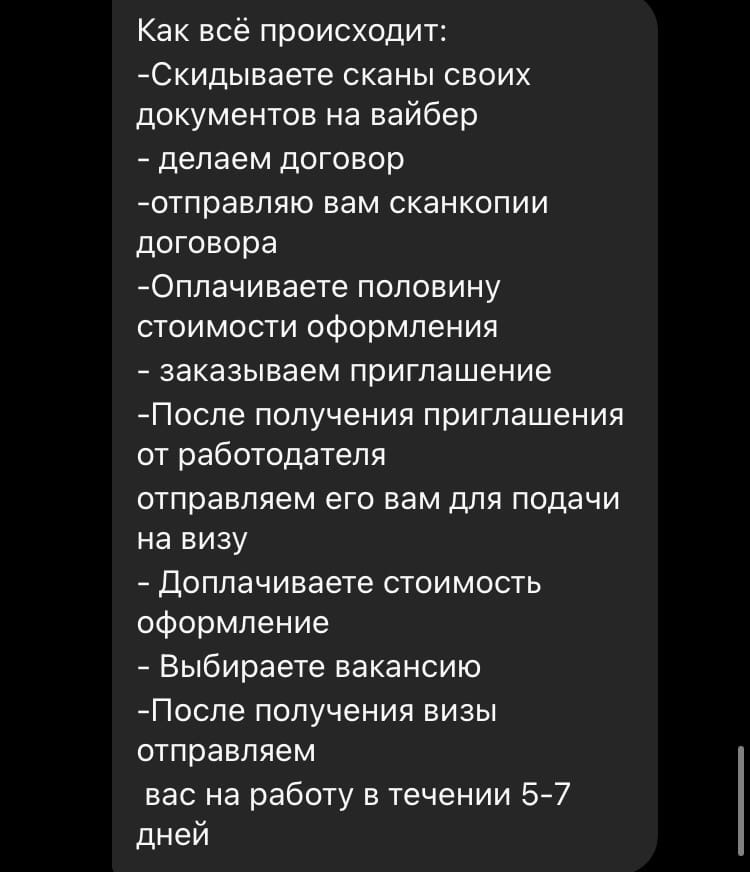 Попросили скинуть паспорт, чтобы проверить его на депорты и составить договор и всякую ерунду.